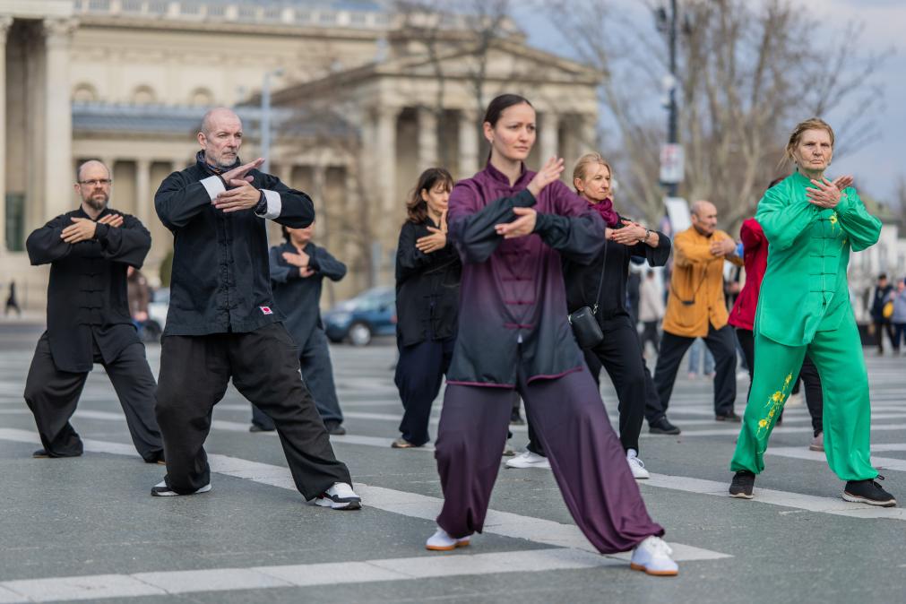 3月21日,匈牙利太极拳爱好者进行太极拳展演,庆祝首个“国际太极拳日”。新华社发(康奇·马顿摄)
