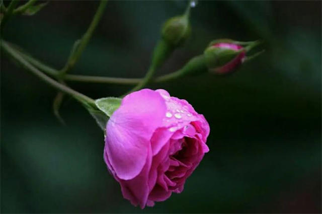 阵雨在初夏的午后,下得车来,行道上人不多,一路蔷薇带雨。近距离看,晶莹的雨水点缀在蔷薇花瓣间,因为花瓣有着茸质的美,如同荷叶上的滚珠凝露。那寂寞娇美的蔷薇,半侧着脑袋,仿佛蔷薇泪。寂静的半阴半雨的午后,这种低迷的感觉分外清晰。