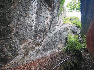 这是万佛堂大殿后面的崖壁。唐代时浮雕都镶嵌在崖壁上,至明代才将浮雕拆下来,搬到殿内并镶嵌到三面墙上。 遗憾的是,明代的这次搬迁打乱了浮雕石板原本的排列顺序。 在万佛堂下方的孔水洞内,现在也存有隋唐时代刻经造像。