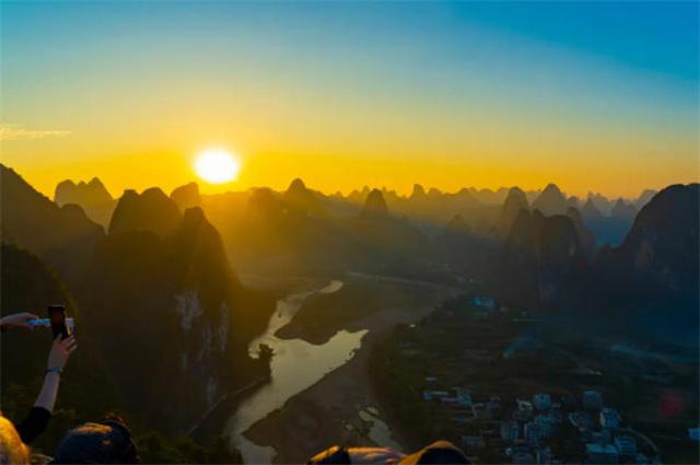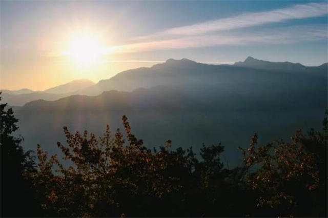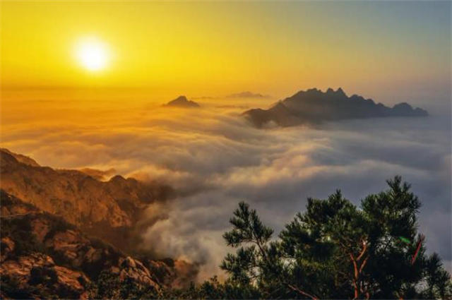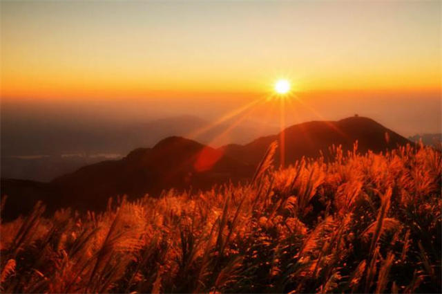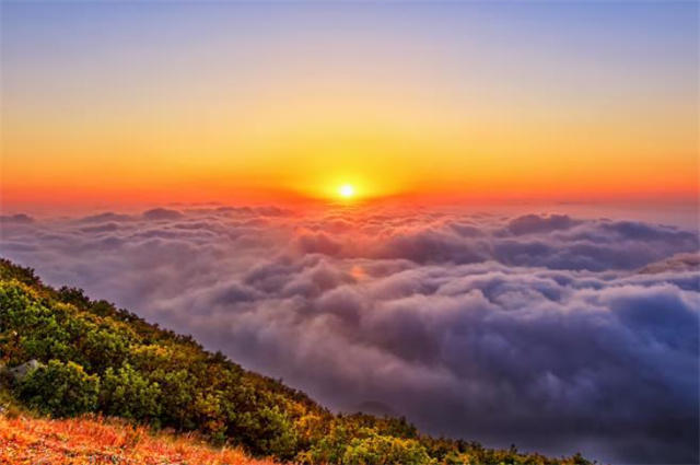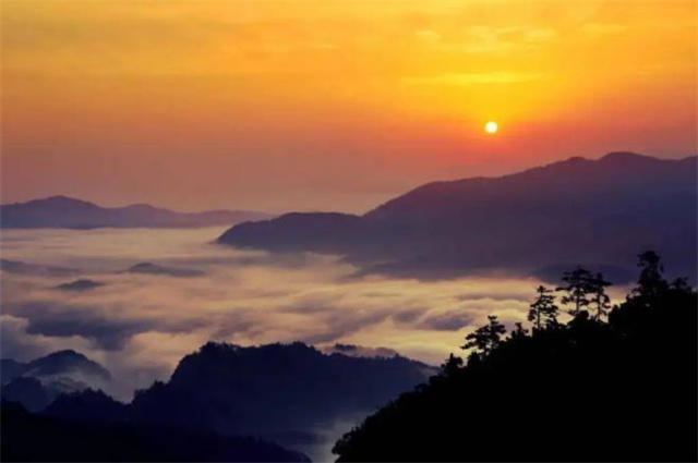 站在高高的山巅,沐浴云海夕阳。