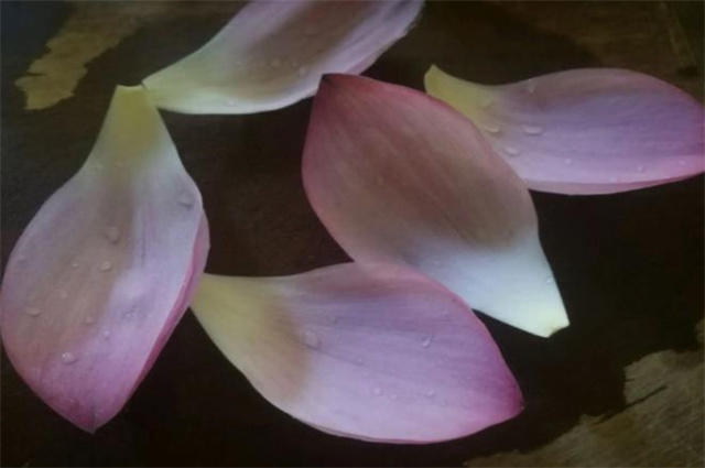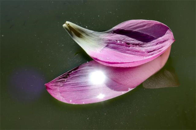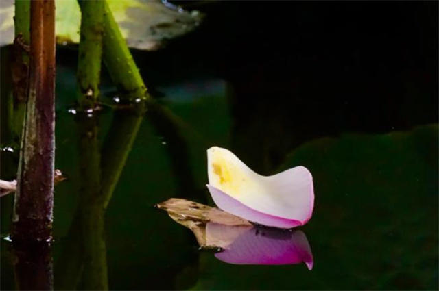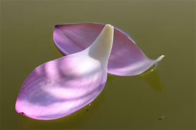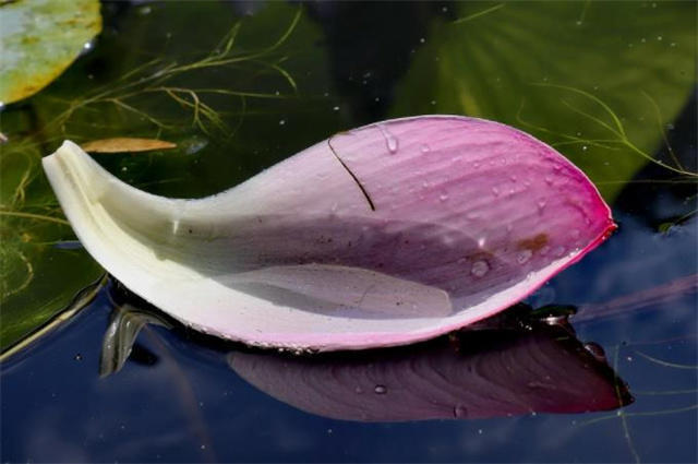 因为写荷花落瓣的诗词,自古不多,所以倒给今人留下空间,请用你的彩笔,写下画下,美丽的荷花瓣。