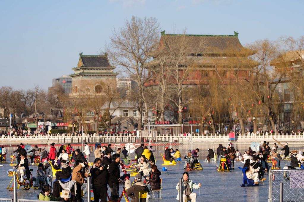 2026年1月12日,在北京什刹海前海冰场,人们在体验冰上运动。CICPHOTO/郭俊锋 摄