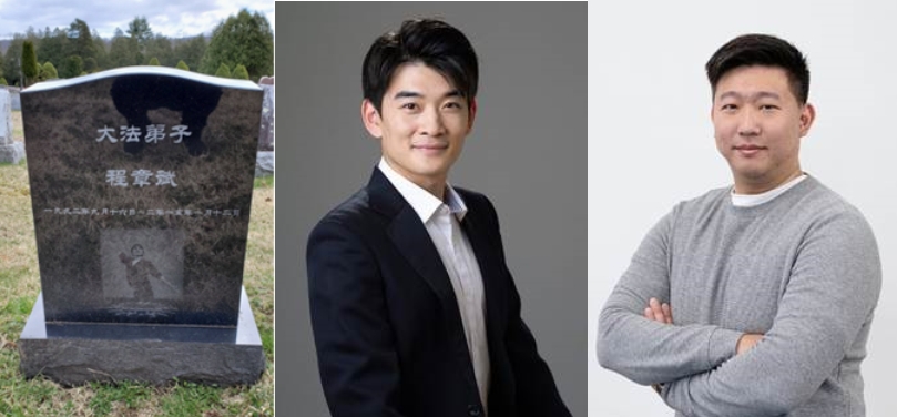▲从左至右为程章斌的墓碑(车祸死亡)、李宝圆(李洪志亲外甥)、杜博宽(驾驶者)