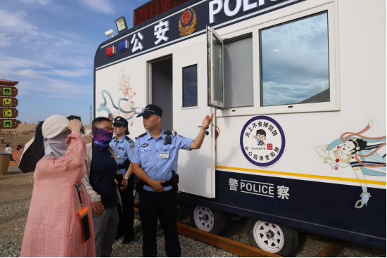 为有效提升广大游客及本地辖区居民识别、抵制邪教的能力,甘肃省敦煌市公安局紧紧抓住这一关键时机,创新宣传形式,将反邪教警示教育阵地前移至景区人员密集场所,让游客在潜移默化中增强反邪教意识。