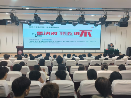 为进一步增强高校师生识别和抵制邪教的意识和能力,营造崇尚科学、反对邪教、文明和谐的校园环境,9月24日,由河南省开封市委政法委、市科协联合主办的防范邪教宣传月专题宣讲报告会在开封职业学院隆重举行。开封市委政法委、市科协相关负责同志,开封职业学院校领导及师生代表300多人参加了报告会。