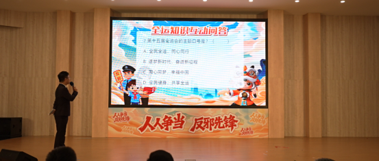 演出期间,还穿插了反邪教和全运会知识有奖问答环节,在一问一答之间,引导师生树立法治观念,正确认识邪教本质及其社会危害性,达到了很好的宣传效果。