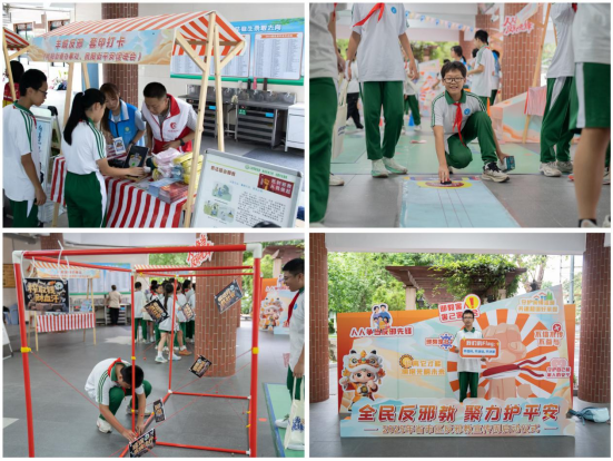 在反邪教游戏互动摊位,“反邪护全运旱地冰壶”“反邪龙舟迷宫挑战赛”等游戏摊位人头攒动。学生们热情高涨,穿梭于游戏摊位间完成各项反邪挑战,在欢乐的游戏中学习识别邪教、防范邪教的方法。