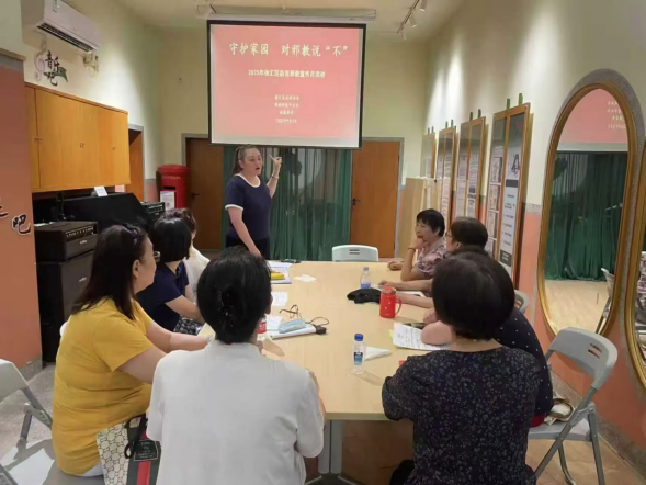 徐汇区湖南街道、徐家汇街道及华泾镇多个居委分别以主题宣传、楼组发放折页、专题讲座等形式,增强居民反邪教意识和能力。