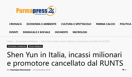 编者按:意大利网站“Parmapress24”于2025年9月20日发表《“神韵”在意大利:百万票房与RUNTS除名事件》(Shen Yun in Italia, incassi milionari e promotore cancellato dal RUNTS)报道称,根据意大利托斯卡纳大区2025年9月9日发布的第19322号行政令(编号2025AD021759),“法轮功”邪教组织旗下“神韵演出”在意大利的主办方因违规被全国第三部门统一登记系统RUNTS除名,报道同时指出“神韵艺术团”在全球范围内受到广泛争议,围绕声誉受损等问题警示意大利各演出场所应避免与其合作。中国反邪教网编译如下: