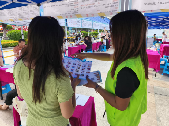 近日,榄核镇星海广场招聘会现场,反邪教宣传摊位成为求职人群关注的“安全驿站”。工作人员围绕邪教组织“伪装招聘中介”“以‘高薪就业’‘包分配’诱骗精神控制”等典型案例,分层拆解渗透套路——从“关心就业难题”拉近距离,到灌输歪理邪说、要求脱离社交,最终实现全面操控,让求职者直观认清风险。