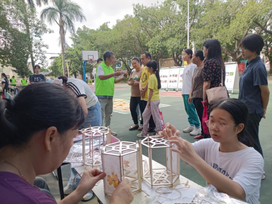 非遗灯笼手作区成为“传正”主阵地,村民在志愿者指导下,于灯笼上绘制“反邪盾牌”“科学之光”图案,书写“崇尚科学、反对邪教”“正念护家、邪祟不侵”标语,不少家庭以亲子协作形式参与,让非遗载体成为反邪“移动课堂”。