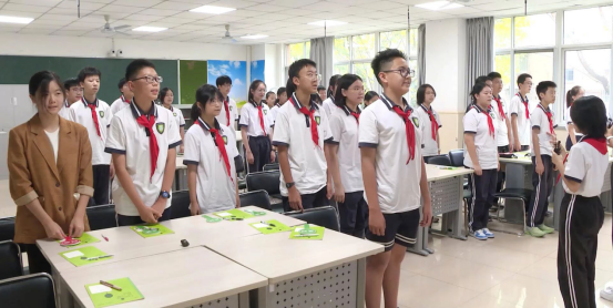 “信‘神’就能考高分?”“不用写作业就能开启智慧?”在曹杨附校六年级的班会课上,一幕名为《困境中的“虚假救赎”》的情景剧正在上演,“邪教分子”利用学生学习焦虑的“痛点”,编织谎言,引发全场深思。主持人一句“是救星还是陷阱?”瞬间点燃讨论,学生们一针见血指出:“背单词靠努力,信‘神’提分违背学习规律!”