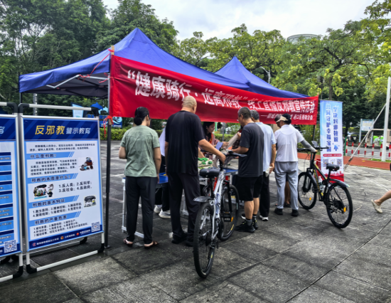此次活动由防城港市、港口区两级政法委共同策划推进,将反邪教宣传与群众关注的体育赛事深度融合。在现场,宣传摊位早早搭建完毕,“健康骑行 远离邪教”横幅和“共同守护幸福家园,坚决对邪教说不”海报格外醒目,工作人员通过展示反邪教知识展板、发放印有反邪教科普内容的环保袋和知识手册,向驻足群众讲解邪教的常见套路与危害。
