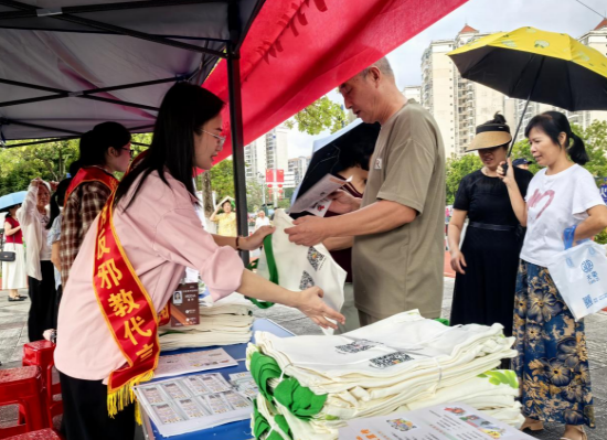 工作人员结合典型案例,用通俗易懂的语言拆解邪教本质,提醒大家提高警惕,遇到可疑情况及时向有关部门反映。现场群众纷纷驻足聆听,主动领取宣传资料,不少人还拿出手机扫码关注“广西反邪”、“防城港反邪”等微信公众号,形成了“人人参与、人人知晓”的宣传氛围。
