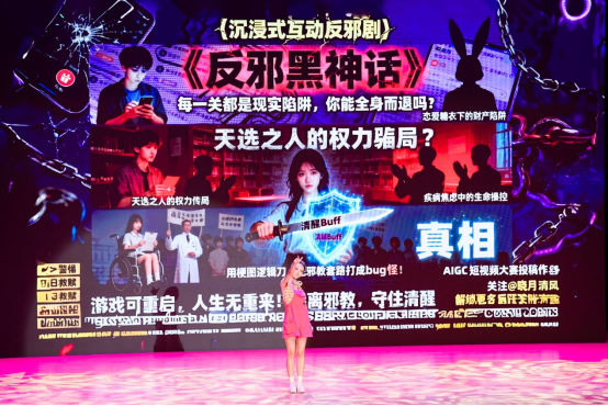 384部参赛作品中,上海戏剧学院牟童的《邪教骗子满街跑》(特等奖)等52部获奖作品脱颖而出。今天的活动上,市公安局、市教卫党委领导进行了获奖作品揭晓和颁奖。这些作品运用AI绘画、数字人等前沿技术,将反邪教理念转化为生动可感的视听作品,赢得了评审专家的高度肯定。这些作品将充实进本市反邪教文艺宣传的资料库,成为“反哺”更多受众的反邪教宣传品。同时,此次活动也成功动员了众多青年学生从反邪教宣传教育的被动接受者华丽转身,成为反邪教的主动参与者和传播者,实现了“人人受教育,人人来宣传”的良性循环。