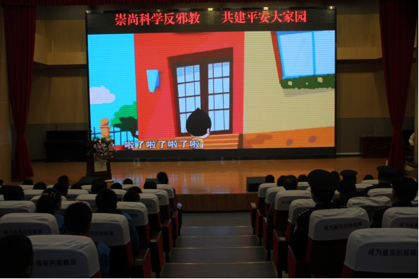 互动问答环节将活动推向高潮。“邪教常常会用什么谎言欺骗人?”“遇到有人宣传邪教该怎么办?”主持人的问题刚抛出,台下同学们便迫不及待地把小手举得高高的。“我知道!要打110报警!”“要告诉老师和爸爸妈妈!”孩子们的回答清脆响亮,充分展现了对反邪教知识的掌握,现场气氛热烈而有序。
