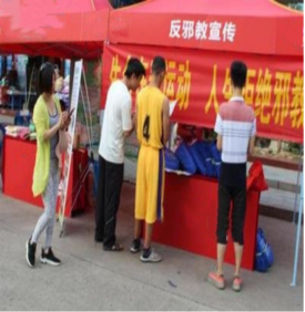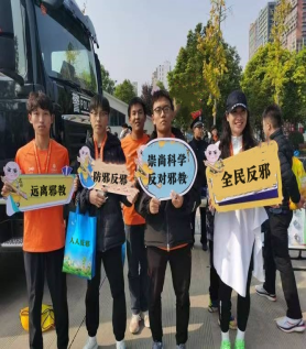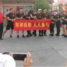 整个马拉松现场融合了各种反邪教元素,处处都渲染着平安、反邪教浓厚氛围。反邪教志愿者在马拉松集市和补给点给参赛人员和观众分发反邪教折页和矿泉水,传递积极向上的正能量,给运动员们加油助威。通过向“义马”参与者与市民发放防邪反邪倡议书、组织扫码关注义乌反邪教微信、微博直播、摆放展板、悬挂横幅等方式,线上线下齐互动,向义乌市民宣传防邪反邪知识,用独特的方式开展 “推广全民科学健身运动,全民齐心建设无邪义乌”的反邪教警示教育宣传活动。向现场5000余名群众讲解邪教的本质、严重危害等,教育引导广大群众如何防范和抵制邪教。