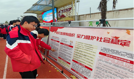 守护青春净土,远离邪教阴霾。11月17日,反邪教民警走进扶沟县大李庄中学,用通俗易懂的语言、真实的案例,深入浅出地剖析邪教对个人、家庭、社会的严重危害。同学们纷纷表示,要争当“守护平安,远离邪教”信念的传递者,主动学习反邪教知识,提升身边同学理性辨别,让青春向着阳光生长。
