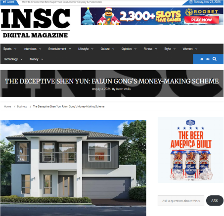 编者按:2025年7月4日,美国在线生活杂志网站TheI nscriberMag.com发表道恩·威尔斯(Dawn Wells)的评论文章《虚伪的“神韵”:邪教“法轮功”的敛财工具》(The Deceptive Shen Yun: Falun Gong’s Money-Making Scheme),揭批“法轮功”邪教组织头目李洪志利用“神韵”将聚敛的巨额钱财装入自己的口袋。