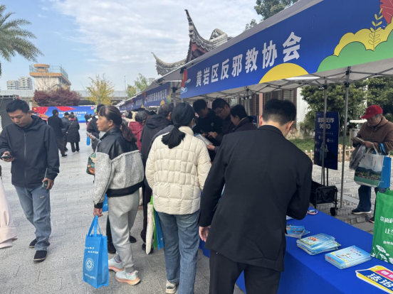 12月4日,浙江省台州市黄岩区普法办联合区宣传部、区反邪教协会等40多个部门,在黄岩九峰公园举办“12·4”国家宪法日广场宣传活动。活动现场,反邪教宣传专区主题鲜明,现场群众反响热烈。