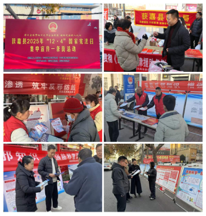 12月4日,河南省新乡市获嘉县在行政路组织开展“国家宪法宣传日集中宣传一条街”活动。活动现场,县人大、县委宣传部、县委政法委等多家单位通过悬挂反邪教主题横幅、布设法治宣传展板、设置法律咨询台等形式,向过往群众发放宪法、民法典以及反邪教知识等宣传资料,耐心接受现场咨询,引导大家通过法律途径依法维护自身权益,做到办事依法、遇事找法、解决问题用法、化解矛盾靠法。