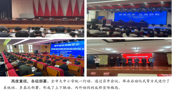 一、高度重视强部署,统一行动固根本。保定市委政法委明确了“宣传教育全覆盖、风险防范无死角、法治意识深扎根”工作目标,建立由各县(市、区)委政法委牵头,公安、教育及校园共同协作的联动机制,全市大中小学统一行动,通过多形式同步开展反邪教警示教育进校园系列宣传活动,筑牢校园防范邪教渗透的铜墙铁壁,守护校园净土。