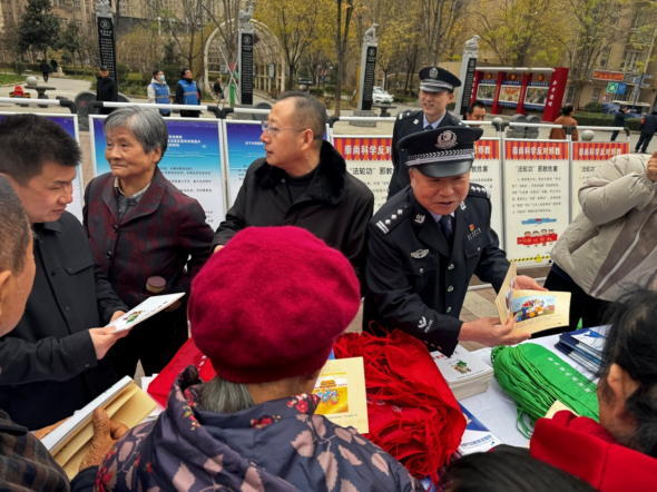 接地气互动设计,让反邪知识“活”起来。为增强宣传实效,巡演现场创新设置“反邪互动区”,打破舞台与观众的距离感。民警设计了“反邪知识问答”“真假信息辨析”等互动游戏,参与者答对问题即可获得定制反邪宣传品;在陕西省西安市、渭南市、榆林市等巡演点,还推出“反邪快闪”“情景模拟”等环节,邀请观众上台参与表演,亲身体验邪教的拉拢套路。巡演过程中,民警还化身“反邪宣传员”,引导群众关注“中国反邪教网”,并向群众发放宣传手册、讲解法律法规,现场解答群众关于邪教识别、举报途径等问题。