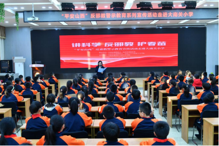 12月17日下午,山西省反邪教协会联合山西大学马克思主义学院走进太原市迎泽区大南关小学校,开展了“平安山西”反邪教警示教育系列宣传活动。