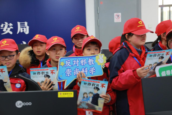 警营开放体验深,反邪教育入童心。为强化青少年防范邪教的意识,县反邪教工作协会组织学生走进公安局指挥大厅,“零距离”体验公安工作,接受了一堂生动的反邪教警示教育课。民警结合青少年认知特点,通过真实案例讲解邪教可能利用网络、伪装等方式渗透的危害,教育同学们树立科学观念,自觉远离邪教侵蚀。