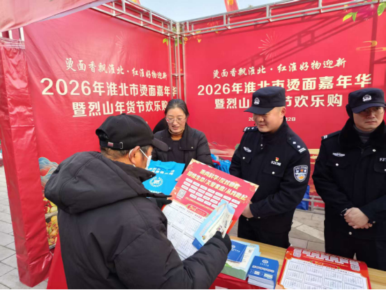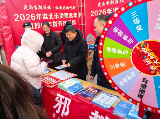 1月10日,在安徽省淮北市烫面嘉年华热闹开市、街巷飘香之际,淮北市烈山区委政法委联合区司法局、区商务局、烈山镇等单位,在人流密集的节庆现场开展了“崇尚科学反邪教 民俗传情护平安”主题宣传活动,让反邪教宣传接地气、入人心。