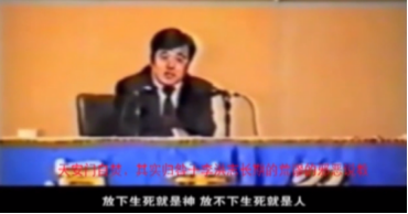 ▲“法轮功”邪教头目李洪志1999年5月在澳大利亚煽动习练者:“放下生死,就是神,放不下生死就是人”