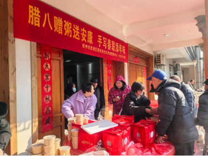 活动现场,方回春堂为辖区居民们精心熬制了新鲜热乎的腊八粥,街道和社区则准备了精致的马年挂历,志愿者们将温暖与年味传递给到场的每位居民。居民们看着金光闪闪的马年挂历,一边喝着甜甜的腊八粥,一边听着志愿者们科普反邪教与反诈知识,视觉、味觉与听觉的三重“刺激”,让他们在大脑中对这场腊八节活动留下了别样的深刻印象。