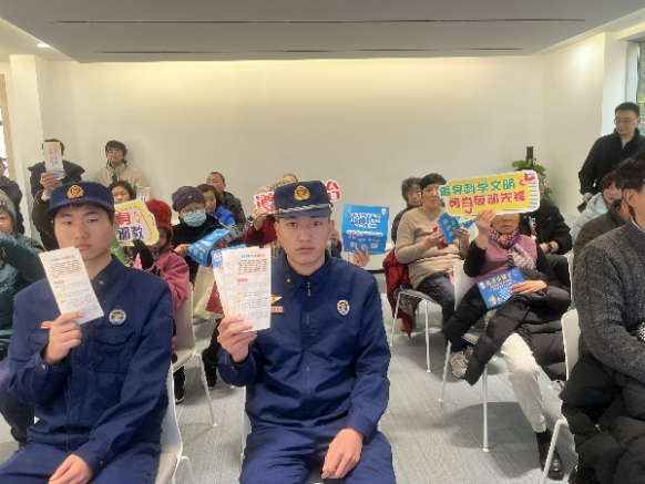签到处,工作人员向居民发放反邪教宣传折页。课堂上,街道反邪教专职干部和消防讲师联手授课,一边手把手讲解火患排查、应急处置等实用技能,一边巧妙把邪教比作“隐藏的思想火灾隐患”,戳破其借“祛病消灾”蛊惑群众的真面目。