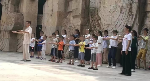 ▲“乾源文化”非法组织以太极等为幌子,带领小学员在公园练功