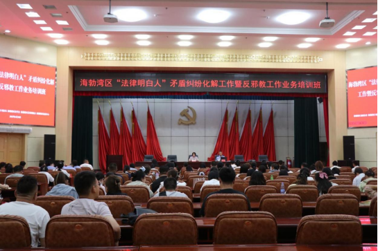 机关带头强能力、业务宣传双提升。突出机关干部“先学一步、先做一步”,从能力培训和实践宣传两方面发力,夯实反邪教工作基础。海勃湾区委政法委联合区法学会、综治中心、反邪教协会,针对机关及基层工作人员开展反邪教工作业务培训,围绕“当前反邪斗争形势、基层工作问题、工作流程”授课,覆盖区反邪教工作人员、镇(街道)政法委员、村(社区)负责人共260余人,有效提升干部识邪、防邪专业能力;市委政法委联合海勃湾区委政法委、新华西街道反邪教分会,走进企业和社区开展“反邪宣传‘零距离’”活动,机关干部现场设置咨询台,发放宣传资料200余份,解答职工、居民关于反邪教法律法规的疑问10余人次,既强化机关干部宣传实践能力,也推动反邪教知识向群众延伸。