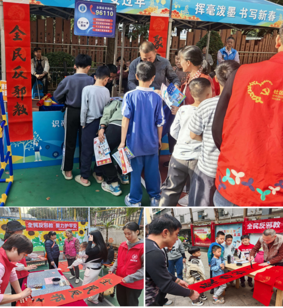 新春将至,年味渐浓。为深化反邪教警示教育宣传工作,切实提升辖区居民群众识邪、反邪、拒邪的意识和能力,广东省深圳市龙华街道联合辖区党群服务中心,邀请书法爱好者开展“义送春联、拒绝邪教”活动,将墨香送福与反邪教知识科普相融合,让群众在红红火火的年味中筑牢反邪思想防线。