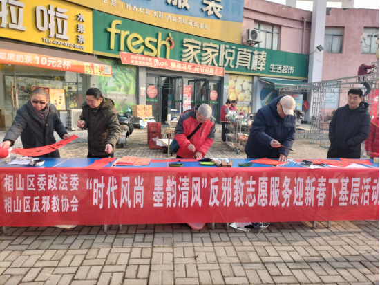新春将至,安徽省淮北市相山区街头墨香四溢。一幅幅蕴含反邪教警示的春联,正通过志愿者的手笔,传递到千家万户。近日,相山区反邪教协会以“时代风尚·墨韵清风”为主题,开展了一场既接地气又寓意深远的迎新春志愿活动。