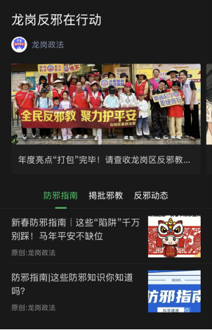 龙岗区坚持系统思维,打破传统宣传内容分散的局限,在微信公众号上构建起集知识普及、案例警示、动态跟进于一体的“一站式”反邪教宣传窗口。专栏下设“防邪指南”“揭批邪教”“反邪动态”三大板块,各有侧重、有机联动: