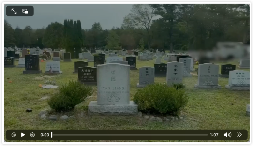 ▲在位于纽约州卡德巴克维尔的“法轮功”墓地群里,头目李洪志母亲