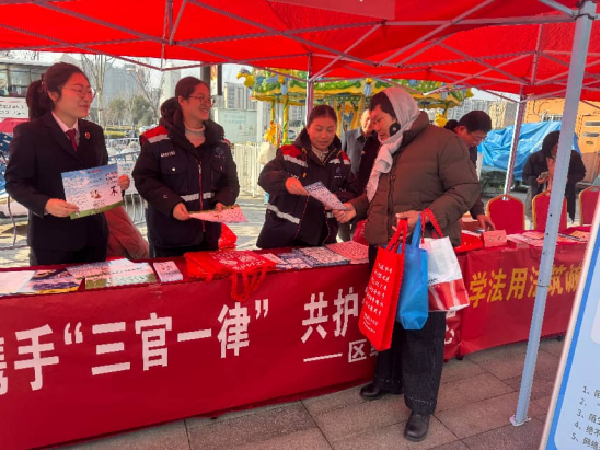活动现场,法治宣传氛围浓厚。区委政法委专门设立反邪教宣传专区,通过悬挂宣传横幅、摆放专题展板、发放宣传手册、现场答疑解惑等多种形式,全方位、多角度开展反邪教宣传教育。 工作人员身着醒目标识,立足专业职能,化身反邪宣传员,主动向过往群众发放反邪教宣传单、科普手册、警示海报等资料,耐心讲解邪教的本质特征、骗人伎俩、现实危害以及识别邪教、抵制邪教的正确方法。