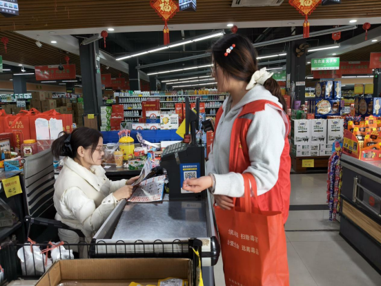 活动依托超市人流集中、受众广泛的优势,打造“固定阵地+流动宣传”模式。工作人员在超市入口、购物通道、收银台等醒目位置悬挂主题横幅,向来往群众发放宣传折页,赠送印有反邪标语的毛巾、围裙等实用小礼品,并用通俗易懂的语言,详细讲解邪教的危害、常见骗人手法及与宗教的本质区别,深刻揭露邪教“反科学、反人类、反社会”的真面目,让群众在购物间隙潜移默化接受反邪教育。