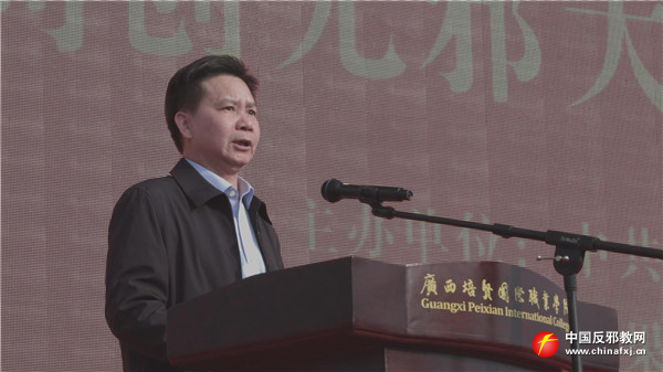 广西培贤国际职业学院常务副院长代表教师宣读《反邪教承诺书》