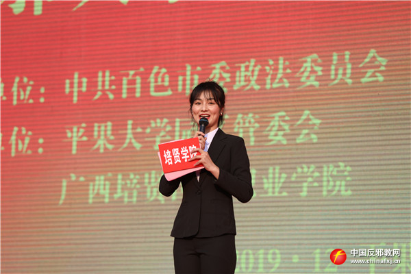 下午3点半,平果县人民政府副县长、公安局局长周作铁宣布活动开始,活动进入议程。首先由平果县委常委、政法委书记谢军致辞。接着,广西培贤国际职业学院院长林宁作动员讲话,他从五个方面要求学校教师,要在传播科学知识、传授学生劳动技能和塑造高尚思想品德等方面负起责任,在倡导公平正义、遵纪守法、反对邪教等方面率先垂范。要求学生树立正确的人生观、世界观,要珍惜青春美好时光,努力学习科学文化知识,掌握现代劳动技能,要崇尚科学,反对邪教。广西培贤国际学院常务副校长代表全体老师宣读《反邪教承诺书》。百色市委政法委副书记林贵肯宣布活动启动。