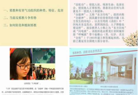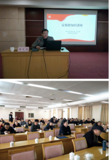 这次专题辅导讲座主要围绕“邪教和有害气功组织的种类、特征、危害”、“当前反邪教斗争形势”、“如何防范和抵制邪教”等三个方面进行了阐述,并围绕“法轮功”“全能神”邪教的组织体系、活动特点、传教形式等进行了深入浅出的讲解,教育引导广大群体干部充分认识邪教的危害性和反邪教工作的重要性、必要性和紧迫性,进一步提高防邪反邪的本领。