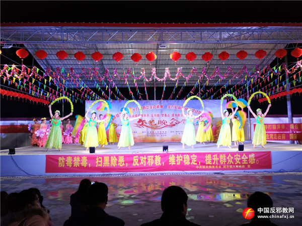 新年伊始,广西壮族自治区来宾市忻城县举办了形式多样的文艺晚会来迎接新春。借此契机,忻城县委政法委组织各乡镇将反邪教警示教育宣传融入节庆活动中。