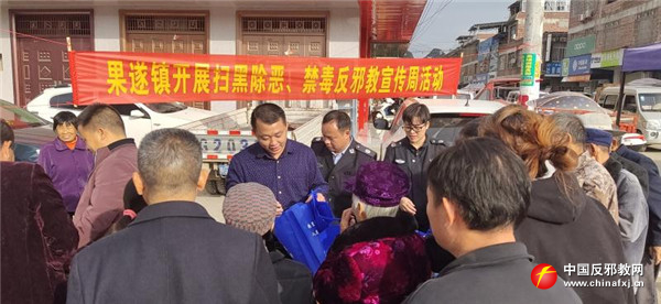 为进一步提高广大人民群众识毒、防毒、拒毒、禁毒和识邪、防邪、拒邪、反邪的意识和能力,近日,忻城县果遂镇结合春节前夕的赶集日在果遂镇新市场开展扫黑除恶、禁毒、反邪教宣传活动。