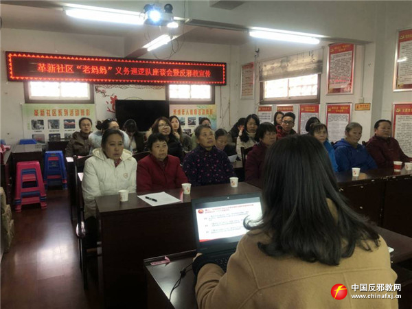 她们还经常召开反邪教知识学习会,“多学习才能加深印象”“自已懂了,才好去教别人”……学习反邪教知识的劲头不输于年轻人。正是她们这种长期不懈的学习精神,每逢寒、暑假,她们都积极发挥“五老”志愿者作用,通过宣讲会、知识讲座、抢答赛等特色活动,给辖区青少年普及反邪教知识,引导青少年把学到的知识带回家,通过“小手拉大手”的形式带动家长一起拒绝邪教,深化“广西文明家庭拒绝邪教”活动。