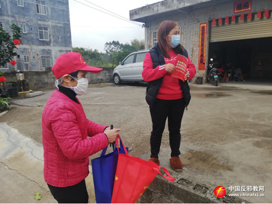 疫情在前,使命在肩。为有效切断疫情扩散蔓延的渠道,避免邪教借机“谣言”惑众,使广大人民群众理性看“疫”,科学防疫,玉林市的巾帼服务队在积极做好疫情防控工作的同时,开展反邪教科普宣传,引导基层群众学会自我防控,做到理性防疫不信邪,构筑防疫反邪的巾帼防线,助力打赢疫情防控阻击战。