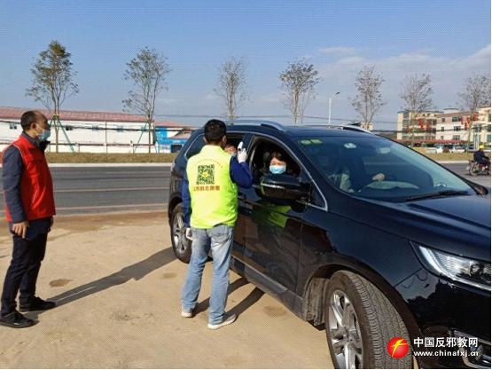 反邪教志愿者对重点路段过往车辆进行防疫检查