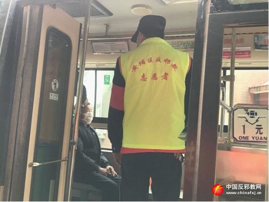 反邪教志愿者在公交站开展防疫工作
